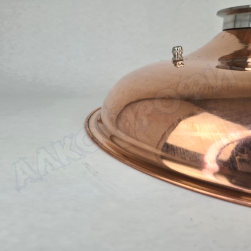 Медная купольная крышка это крышка для перегонного куба кастрюльного типа Подходит как к медным, так и к нержавеющим бакам. Имеет купольную форму, что значительно увеличивает объём паровой зоны и увеличивает максимальный объём перегоняемого сусла. Медь нейтрализует соединения серы, что значительно улучшает качество зерновых и фруктовых дистиллятов, а так же придаёт им более мягкий вкус. Так же взаимодействие с медью раскрывает аромат благородных напитков.