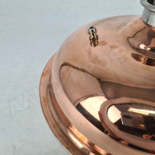 Медная купольная крышка это крышка для перегонного куба кастрюльного типа. Подходит как к медным, так и к нержавеющим бакам. Имеет купольную форму, что значительно увеличивает объём паровой зоны и увеличивает максимальный объём перегоняемого сусла. Медь нейтрализует соединения серы, что значительно улучшает качество зерновых и фруктовых дистиллятов, а так же придаёт им более мягкий вкус. Так же взаимодействие с медью раскрывает аромат благородных напитков.