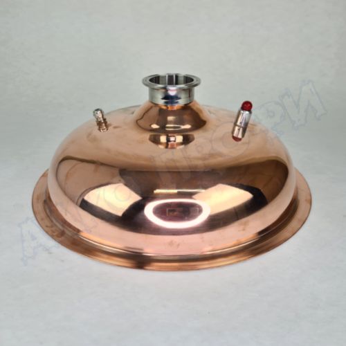 Перегонный куб из пищевой нержавеющей стали AISI 304 кастрюльного типа с крышкой из меди отечественного производства. Используется с дистилляторами (самогонными аппаратами) в качестве емкости нагрева спиртосодержащих жидкостей.