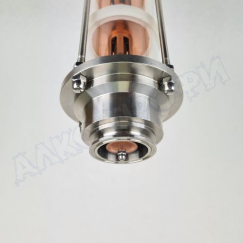 Колпачковая колонна (флейта) 3"(с клампом 2") представляет из себя флейту с тарелками и стёклами 3" и с фланцами с выходом 2". То есть вы получаете размер и мощность колонны 3", но с выходом 2". Кламп 2" универсален и совместим с аппаратами любого производителя.