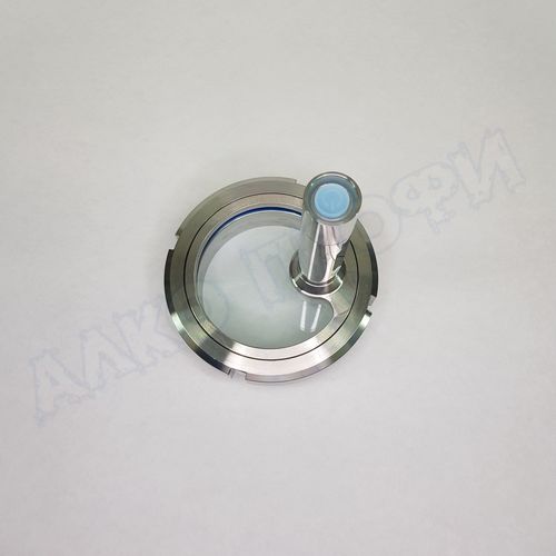 Окно оснащено фонариком в нержавеющем корпусе. Как правило в рабочей ёмкости при перемешивании продукта темно. Фонарик позволяет подсветить и увидеть более детальную картину. Он прост в эксплуатации и крепится к окну на резьбе. Это позволяет установить или снять его в любой момент. Фонарик вкручивается в верхнюю часть окна, которая находится над стеклом герметична. Поэтому снятие фонарика не влияет на герметичность и не требует уплотнения.