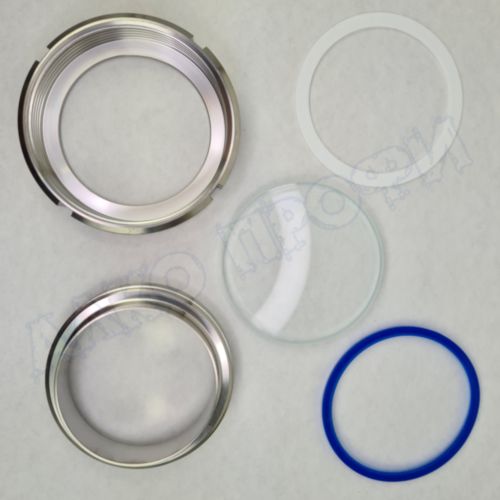 Окно состоит из приварного фланца с резьбой, стекла, уплотнительных прокладок и верхней крышки - гайки. Гайка легко откручивается и даёт доступ к содержимому котла. Это позволяет произвести досыпание или доливание продукта, получить доступ к техническому обслуживанию, установить моющую головку и так далее. Боросиликатное стекло имеет большую толщину и выдерживает значительные нагрузки. А усиленные фланцы из пищевой нержавеющей стали AISI 304 делают период эксплуатации окна практически неограниченным.