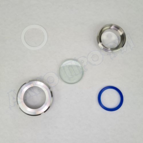Окно состоит из приварного фланца с резьбой, стекла, уплотнительных прокладок и верхней крышки - гайки. Гайка легко откручивается и даёт доступ к содержимому котла. Это позволяет произвести досыпание или доливание продукта, получить доступ к техническому обслуживанию, установить моющую головку и так далее. Боросиликатное стекло имеет большую толщину и выдерживает значительные нагрузки. А усиленные фланцы из пищевой нержавеющей стали AISI 304 делают период эксплуатации окна практически неограниченным.