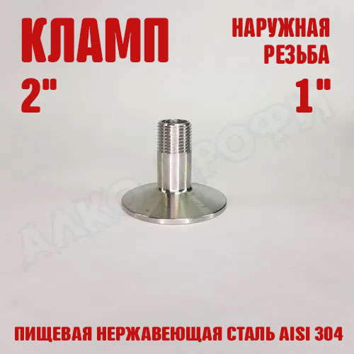 Купить нержавеющий переходник кламп-резьба 2" НР 1" для подключения узла отбора можно через сайт с доставкой в Краснодаре или в оффлайн-магазине AlkoProfi. Всегда в наличие различные ингредиенты и аксессуары для приготовления домашнего алкоголя.