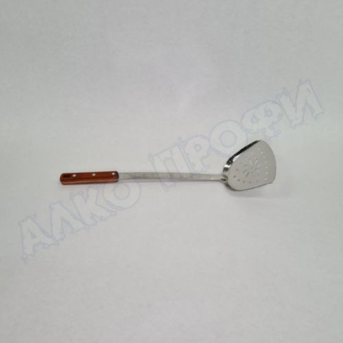 Лопатка с деревянной ручкой – идеальное приспособление для приготовления любых блюд: от вегетарианских до острых мясных. Изготовлена из нержавеющей стали. Ручка деревянная, термостойкая. Удобно лежит в руке, сочетается с любой посудой, имеет отверстие для подвешивания на крючок или гвоздь.